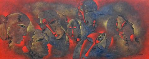 Artist: Erina Tamrakar Year: 2013 Size: 61cm x 152cm Medium: Acrylic on canvas Status: Not Available (SOLD) enquiry
